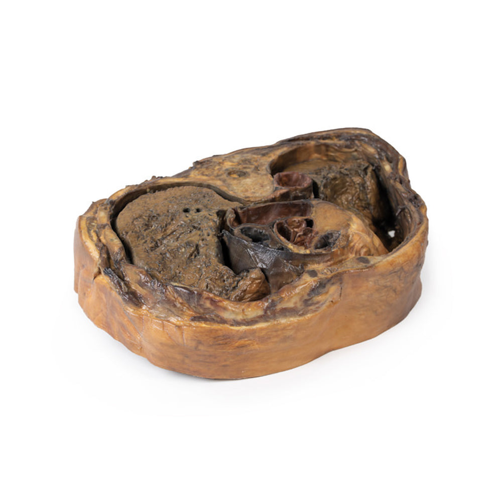 - In the middle mediastinum, the heart is shown within the pericardium, sectioned to display internal anatomy: